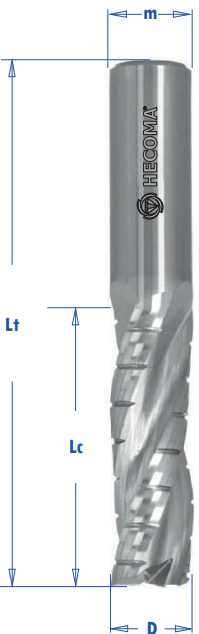 • Upcut helix for upward chip removal.