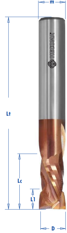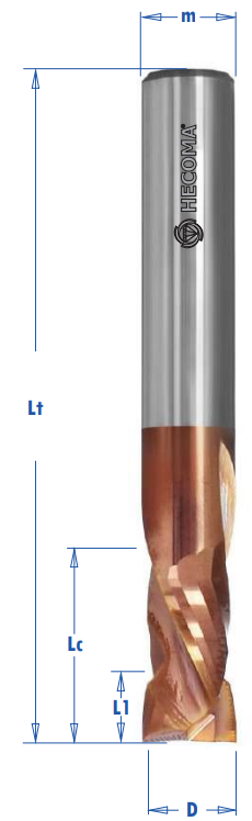 - 2+2 helical cutting edges (Compression).