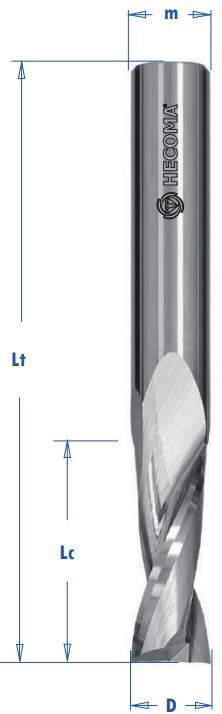 - Upcut helix for upward chip removal.